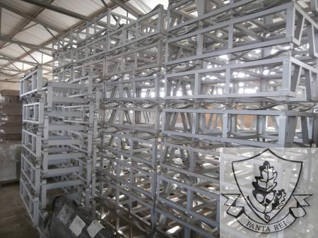 N. 80 supporti rialzati + N. 10 rialzati mulettabili, per barriques da 225 litri, in alluminio anodizzato, marca Lafal, tenuti benissimo.