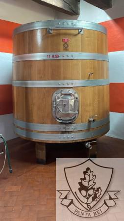 | N.1 tino da 50 hl, marca Garbellotto, anno 2009, rovere di slavonia, vino rosso, lavato e solfitato, valvola parziale e totale garolla da 50, portella in acciaio, chiusino sup. da 80 cm, ingombri : Altezza 220 cm – Diam. 220. |