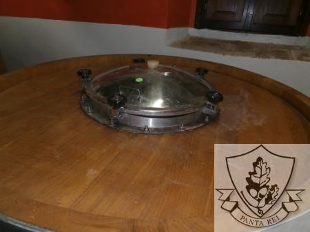 | N. 1 tino da 30 hl, marca Gamba, rovere di slavonia, anno 2011, vino rosso, lavato e solfitato, valvola parziale e totale garolla da 40, portella in accioio 316, termometro interno, assaggiavino, ingombri : Alt. 175 cm x Diam. 182 cm